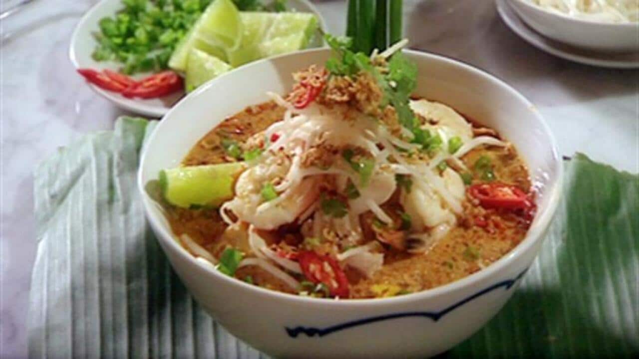 Early Chinese settlers often wed local Malay brides and this gave rise to a generation of mixed Chinese-Malays known as Peranakan. The Malay word "nonya", a term of respect for older women, has become synonymous with the distinctive Malaysian-Chinese cooking style of the Peranakans. The best known example in Australia is the popular spicy noodle soup laksa, of which there are two main types, curry laksa and asam laksa. Curry laksa is a coconut curry soup with noodles, while asam laksa is a sour fish soup with noodles.