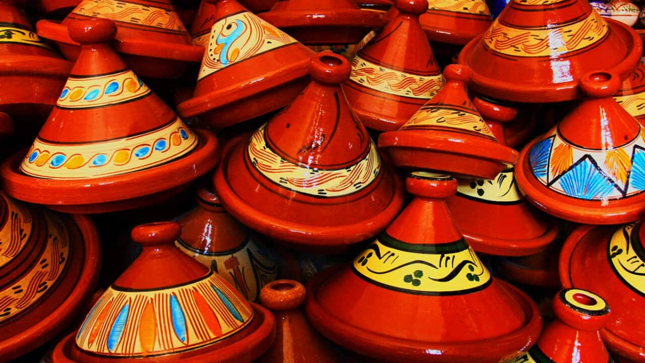A classic Moroccan dish is the tagine (or tajine) – a slow-cooked stew made in an earthenware dish known by the same name. They are typically made with inexpensive cuts of meat that become tender with long cooking and are typically flavoured with fruits, olives, preserved lemons, and spices.