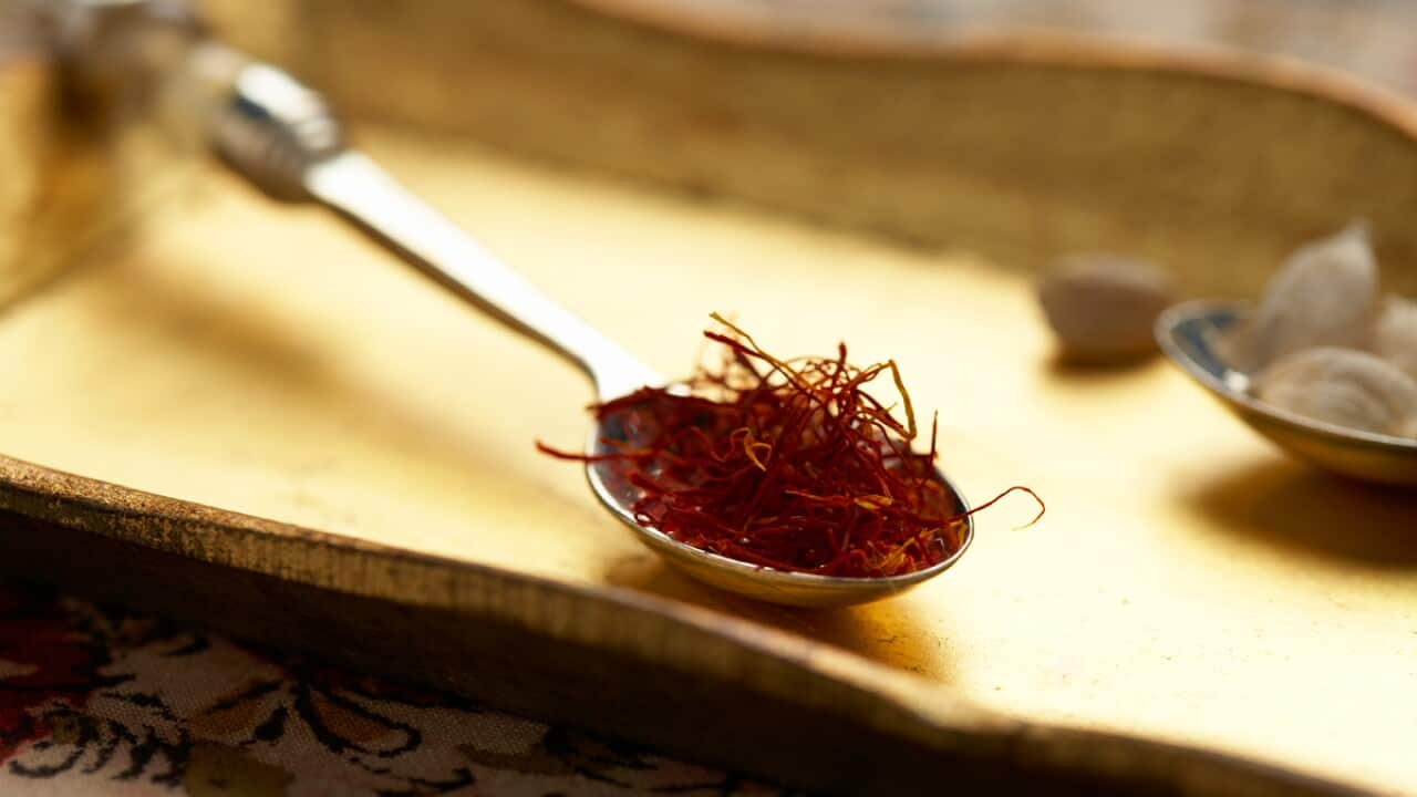 The blend of Indian, Far Eastern and Middle Eastern cooking techniques creates a distinctive mix of complex flavours. The use of pomegranate seeds in some meat dishes adds a sweet, sour note and reflects the Middle Eastern influence on the food.