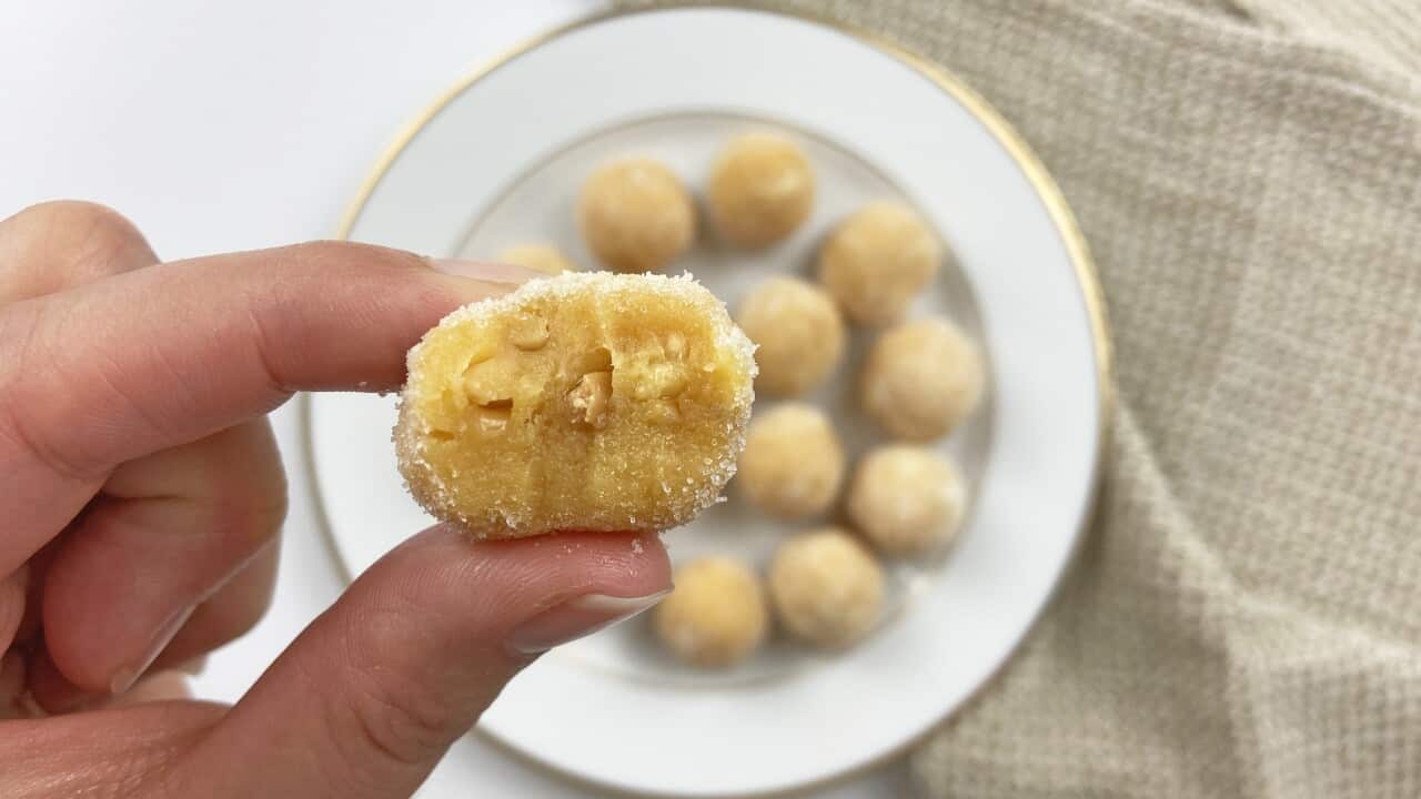 Foi thong, for example, involves flicking fine threads into boiling syrup, which are bundled into a neat parcel. “It’s one of the sweeter ones, with lots of syrup.”
