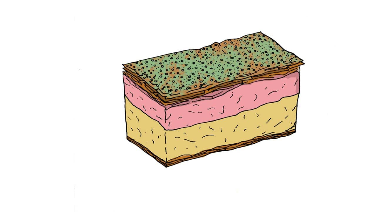 If your bakery made a continental slice, you were winning. Not quite as popular as the snot block or hedgehog, getting your hands on a continental was slim pickings in some suburbs. When you found one, you sucked the custard out from between the chocolate layers, opened your mouth and showed your brother. What can you say? A layer of custard makes people do strange things.