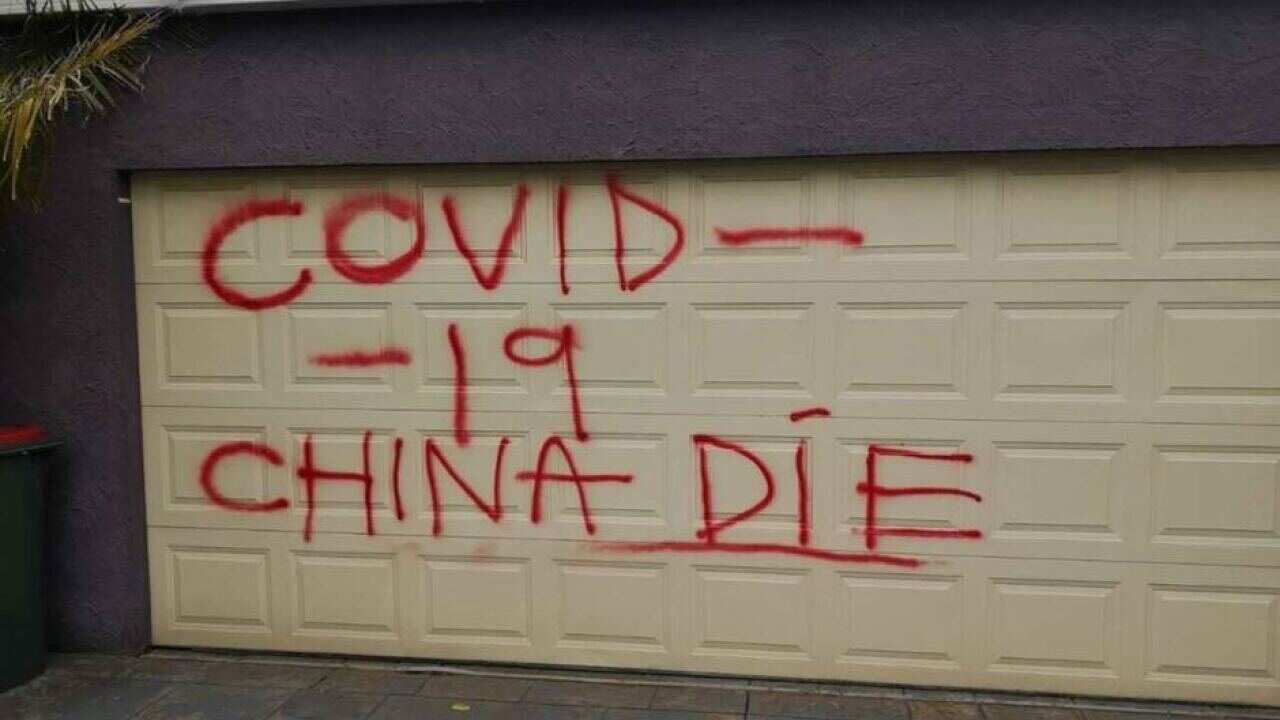 ABC 4月22日报道墨尔本一位华人家门遭涂鸦的事件。报道中称,墨尔本东部Knoxfield区一处华人家庭的车库门口被用红色油漆喷涂上“COVID-19,中国去死”(COVID-19 China Die)的英文文字,次日凌晨2点半左右,有人用石头砸碎多扇窗户。