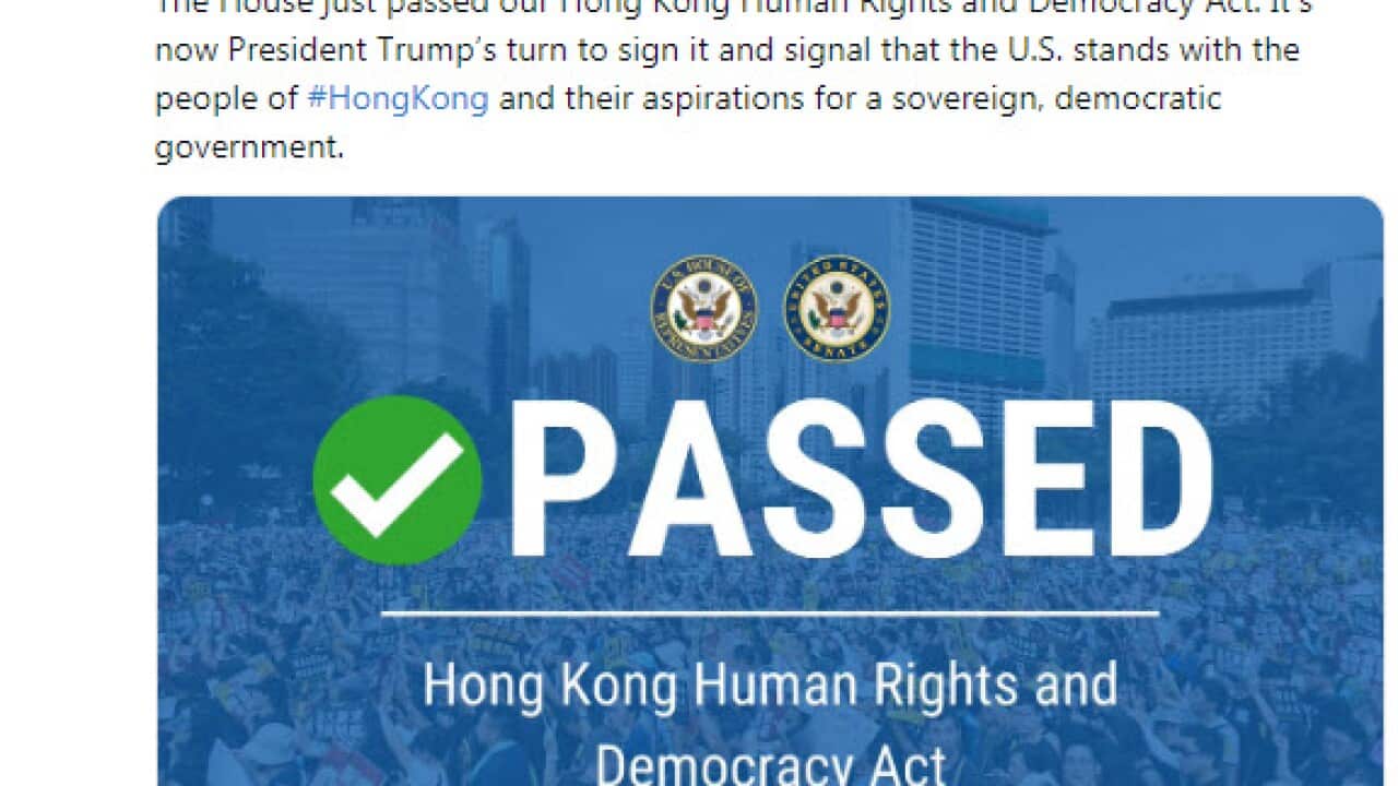 而在国会两院一致通过的压力下,本来对类似法案不以为然的特朗普总统也不得不在11月28日,也就是感恩节当天,签署了这项法案。当晚,香港的抗议群众,齐聚中环的爱丁堡广场,举着美国国旗,高唱《星条旗永不落》,对美国通过这项法案表示感谢。
