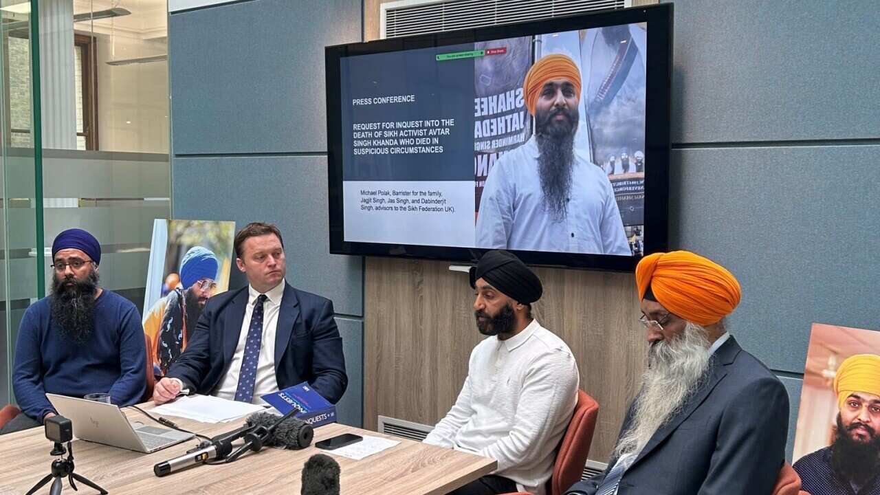 People protest for justice for Hardeep Singh Nijjar, a Sikh leader who was shot and killed earlier this year, at the Consulate General of India in Vancouver, British Columbia, Canada, on 25 September 2023. Earlier this week Canadian Prime Minister Justin Trudeau accused agents of the government of India of carrying out the killing of Nijjar in June, an accusation that has raised diplomatic tensions between the two countries. Source: EPA / ETHAN CAIRNS/EPA