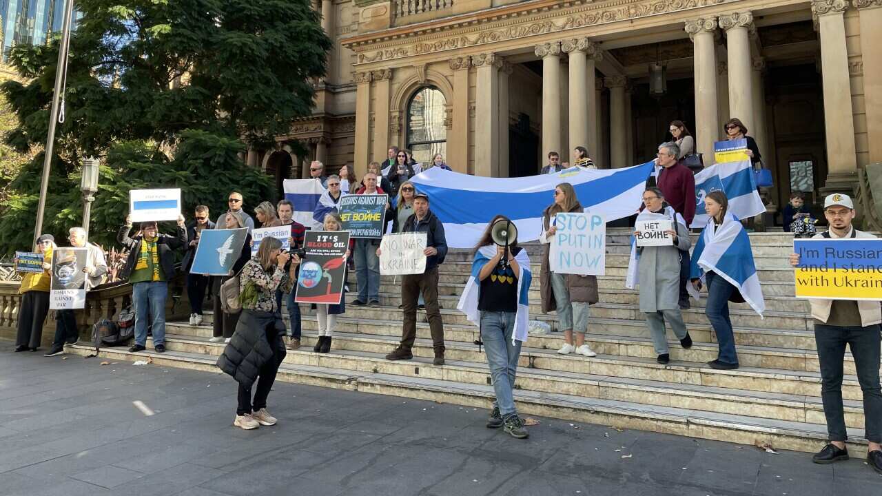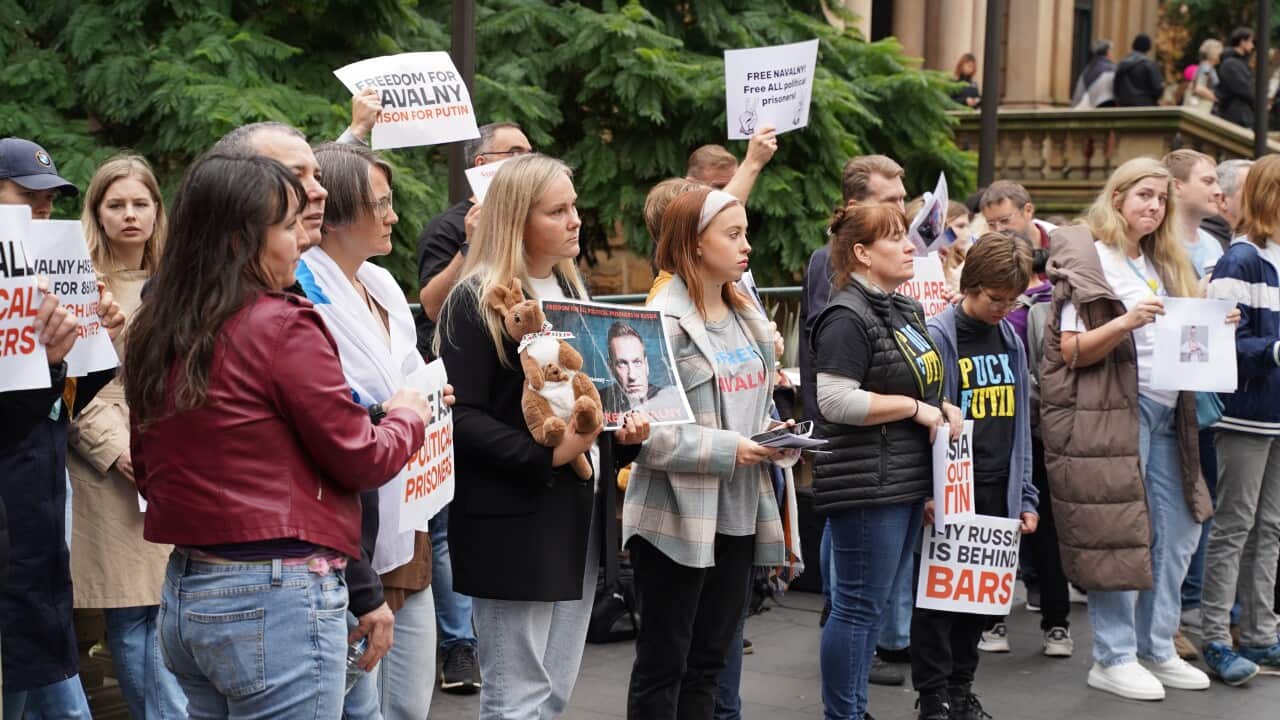 Navalny's supporters rally in Sydney on August, 20, 2023. Credit: Nicholas Buenk