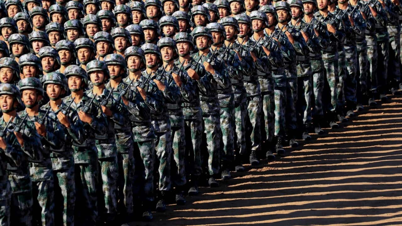Live state television broadcasts showed Xi, dressed in fatigues and speaking from an open-top jeep, telling his troops that China needed a strong military "more than ever" as it moved "closer to the goal of the great rejuvenation of the Chinese nation."