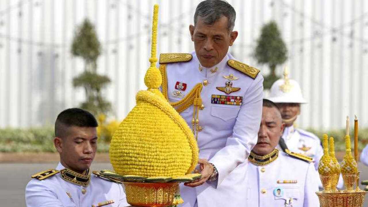 Earlier his fourth wife, Suthida -- married in a surprise ceremony days before the coronation -- was invested as Queen, kneeling in respect in front of her husband who sat on a throne.