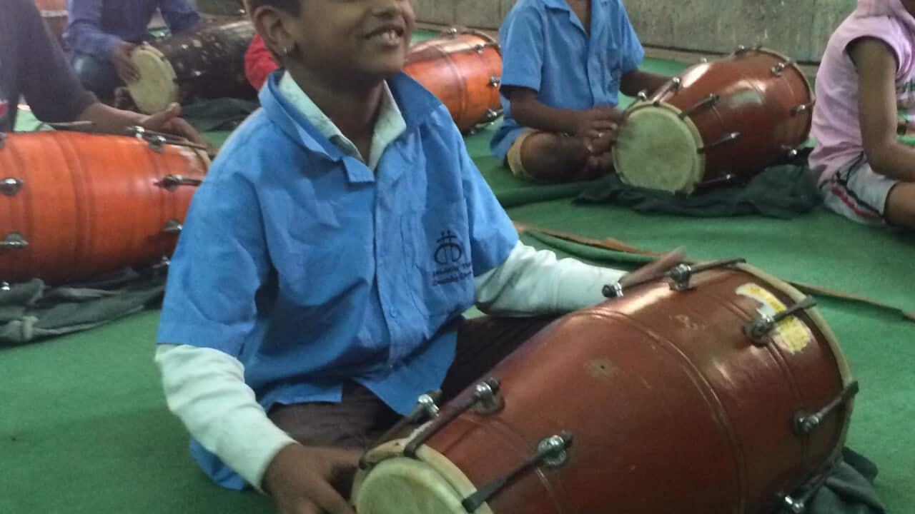 “We’re very happy to have the solar lights now because we can work inside the house and the children can study inside,” says Laxshmi, a resident of the slum.