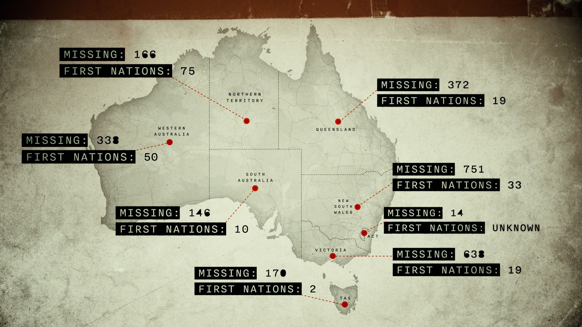 In Victoria, the Indigenous status of 71 per cent of the state’s missing persons is still unknown. In New South Wales, there are nine missing Indigenous women, in Queensland there are four, in South Australia there are three, in Western Australia there are three, and in the Northern Territory there are 15.